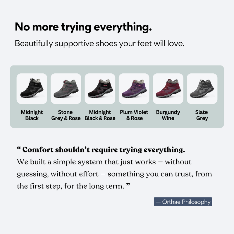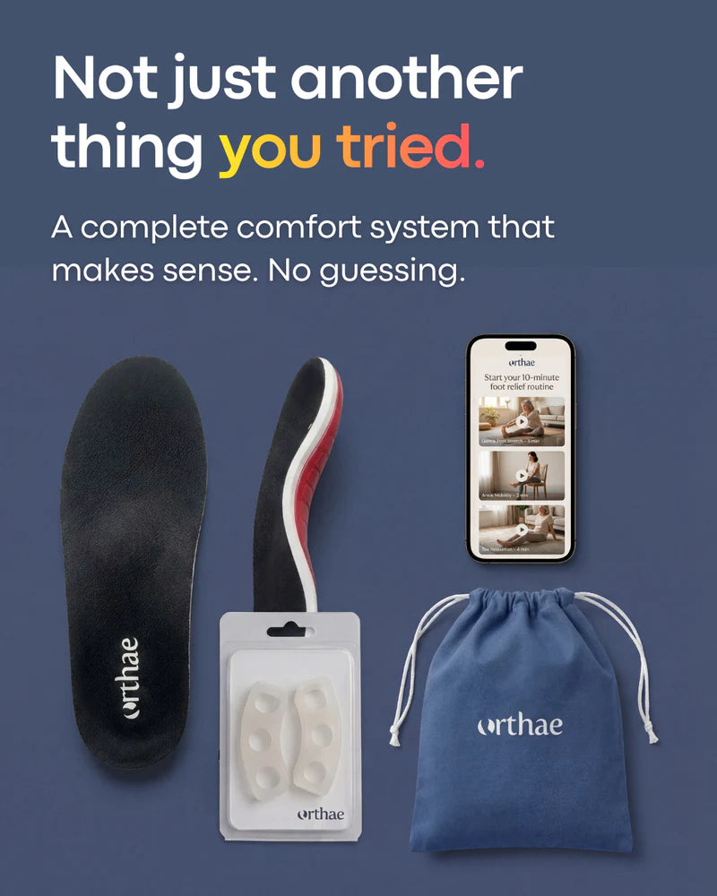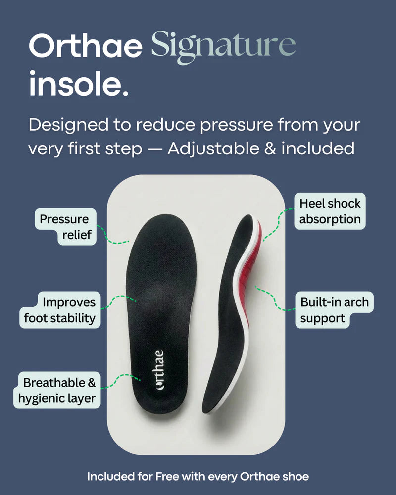 Orthae combines supportive footwear with a complete included (free) comfort system designed for your real, everyday relief.
